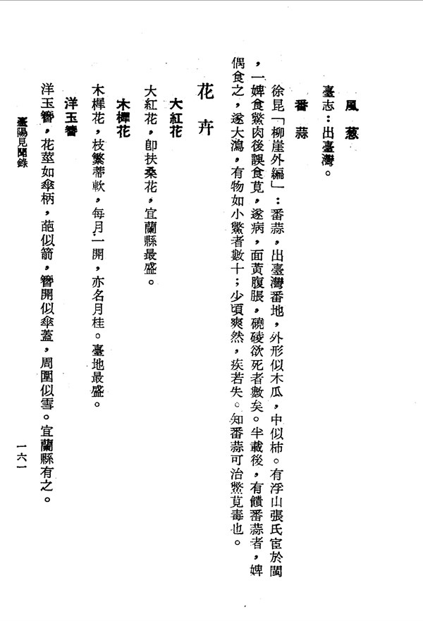 番蒜可治鱉莧毒。 臺陽見聞錄卷下 台灣文獻史料叢刊 -