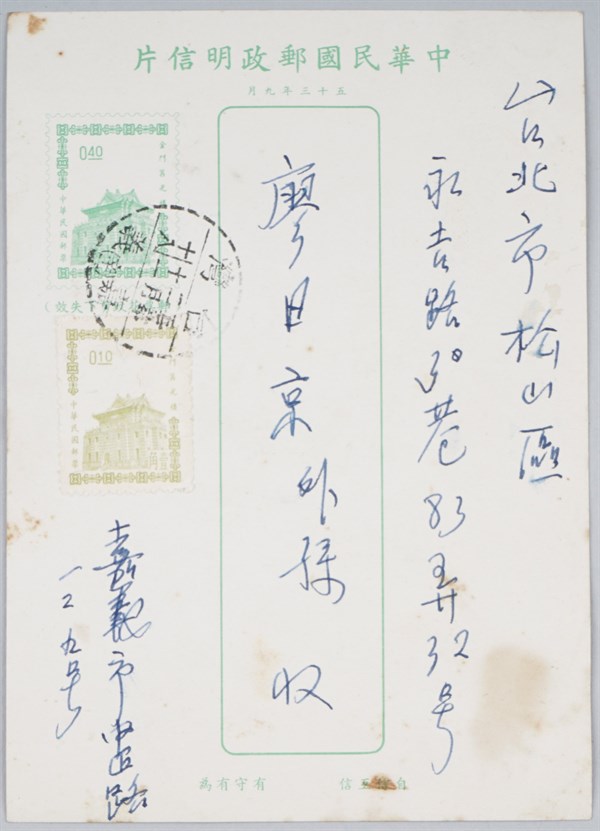 黃文陶寄廖日京明信片之一 -