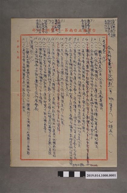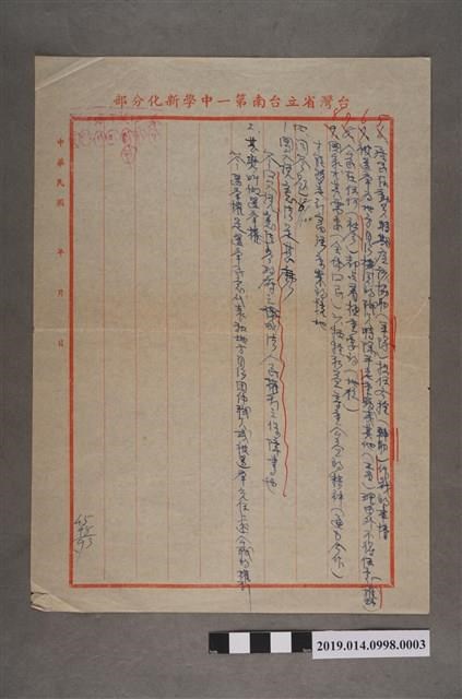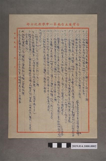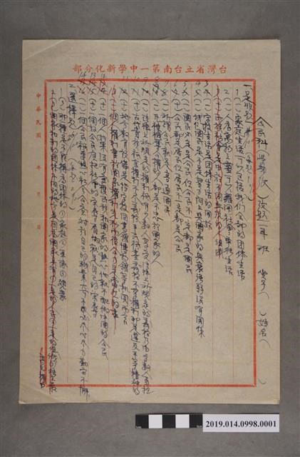 臺灣省立臺南第一中學新化分部一年級公民科學期考命題試卷 -