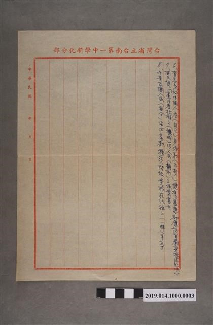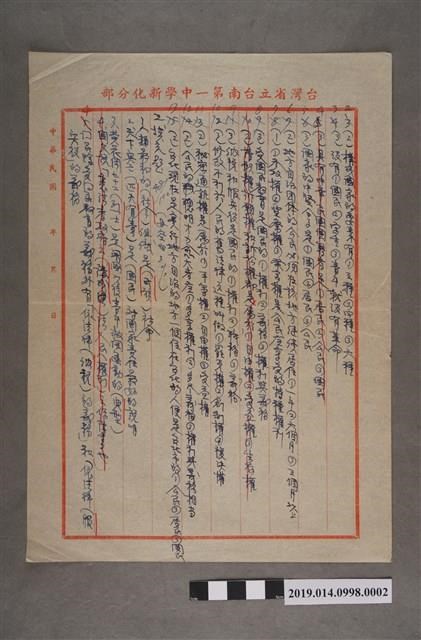 臺灣省立臺南第一中學新化分部一年級公民科第二次月考試題命題試卷 -