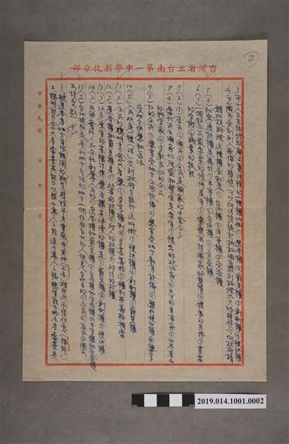 臺灣省立臺南第一中學新化分部一年級公民科第四次隨堂考試命題試卷第2頁(選擇題、填充題) -