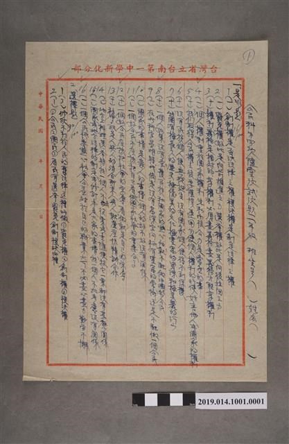 臺灣省立臺南第一中學新化分部一年級公民科第四次隨堂考試命題試卷第1頁(是非題、選擇題) -