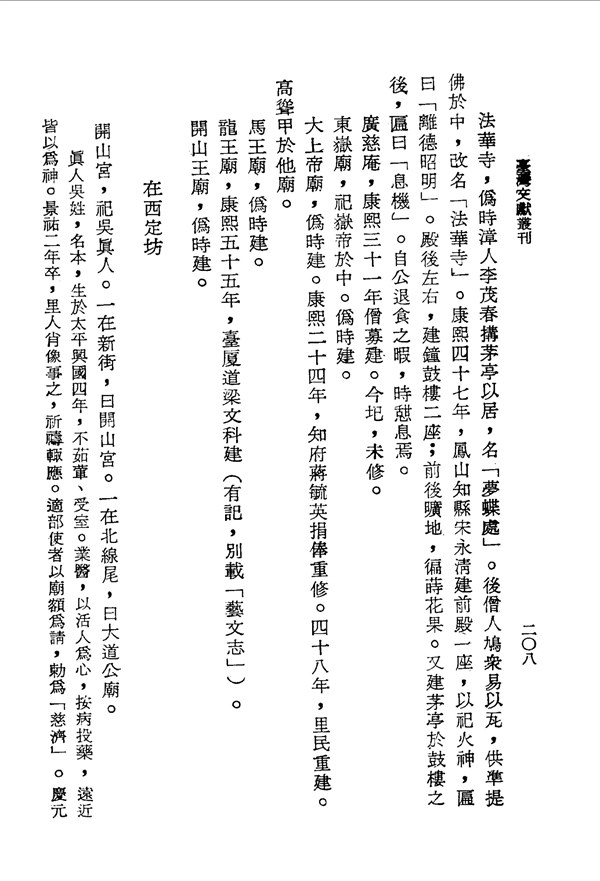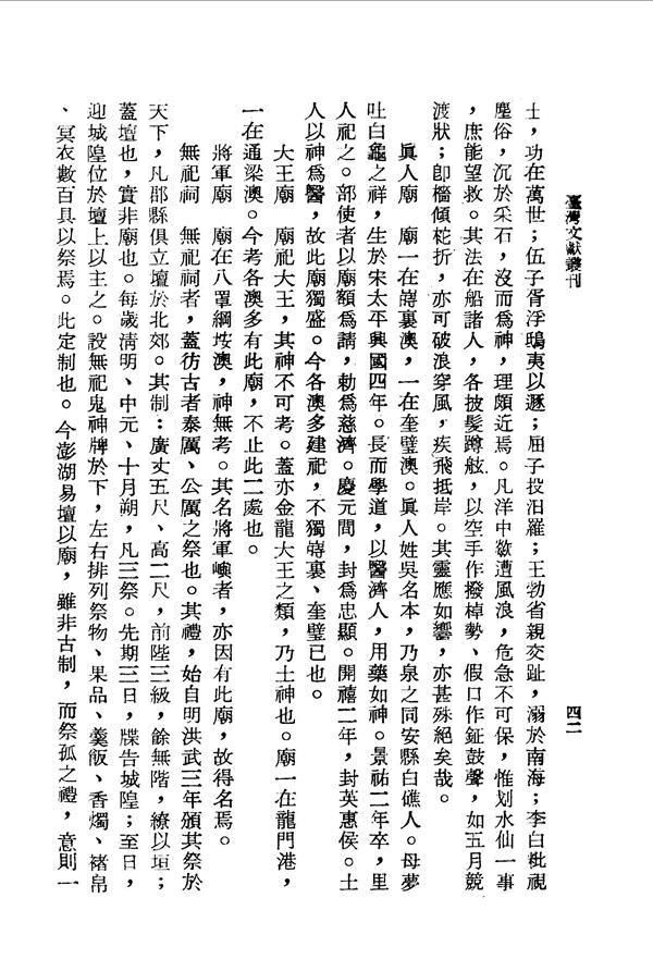 吳真人醫術如神,設保生大帝廟祭之 臺游日記卷三 台灣文獻史料叢刊 -