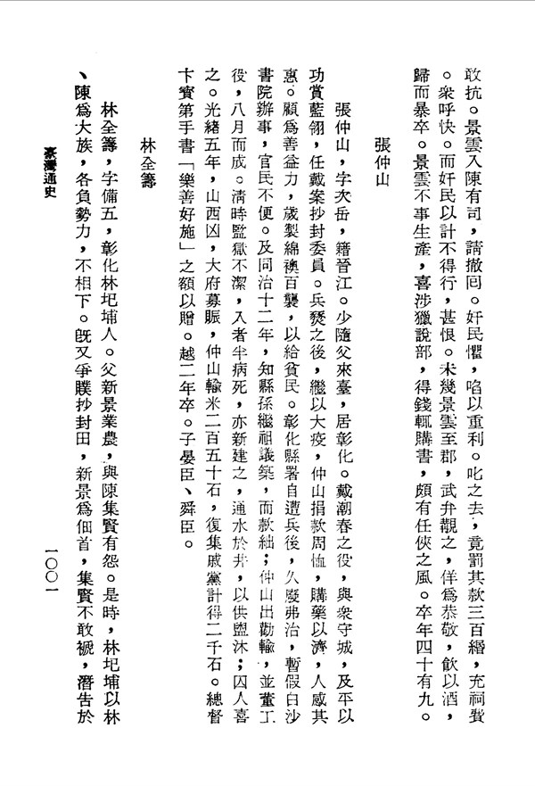 仲山出錢買藥來救濟百姓 臺灣通史卷三十五 台灣文獻史料叢刊 -
