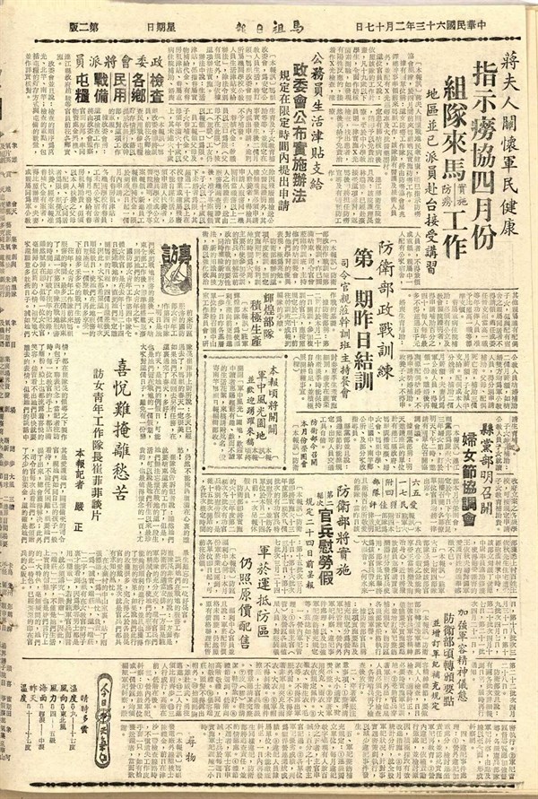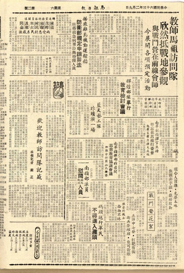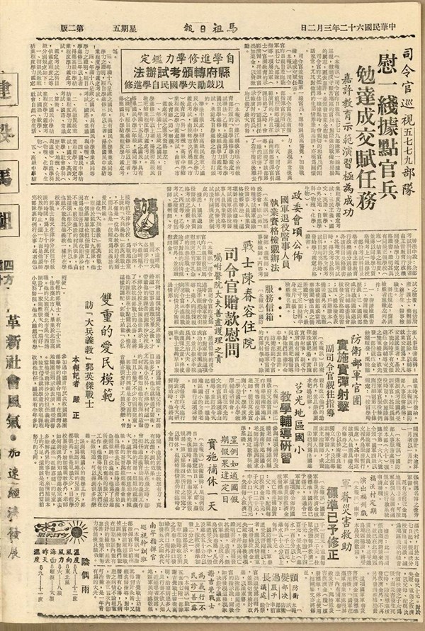 馬祖防衛指揮部訂頒莒光日政治教育督導實施辦法-馬祖日報 -