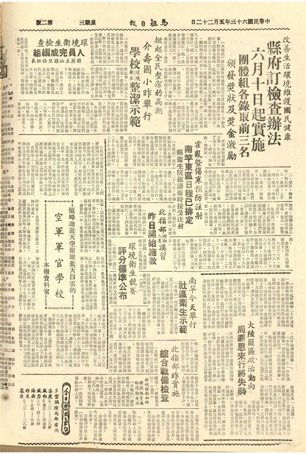 連江縣政府為改善環境衛生特訂定縣屬各機關、社團、學校、鄉村、家戶檢查辦法-馬祖日報 -