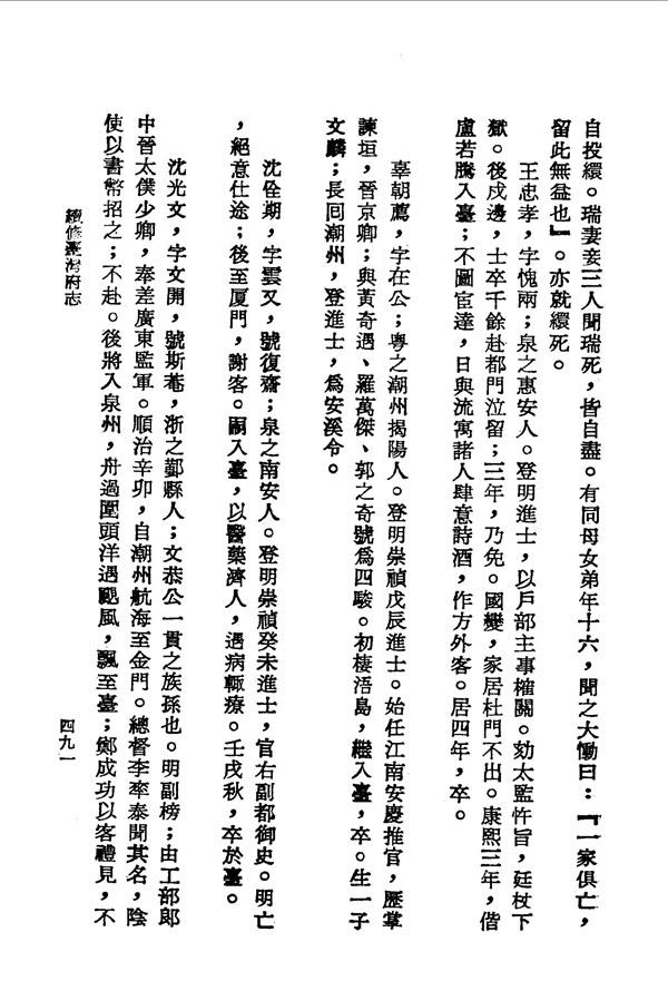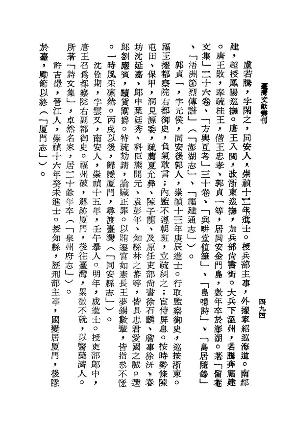 沈佺期於明亡後,入臺以醫藥救人 續修臺灣府志卷十二 台灣文獻史料叢刊 -