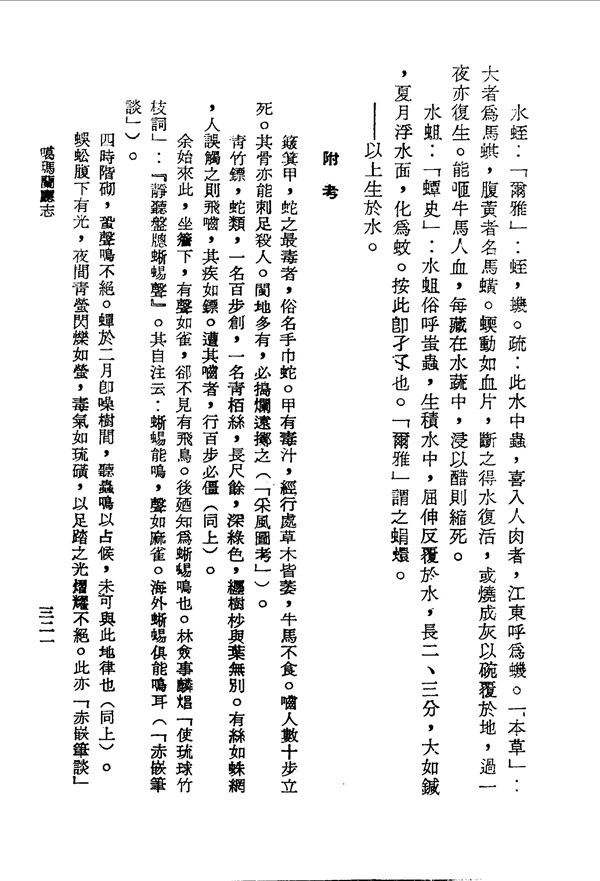 釘地蜈蚣能治蛇傷 噶瑪蘭廳志卷六 台灣文獻史料叢刊 -