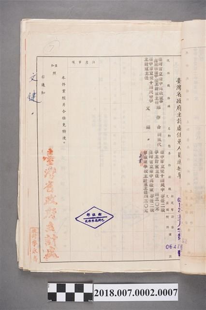 文鍵任臺中高級家事商業職校主計室主任臺灣省政府主計處函令 -