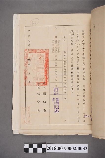 文鍵臺灣省政府主計處中華民國61年考績(成)通知書 -