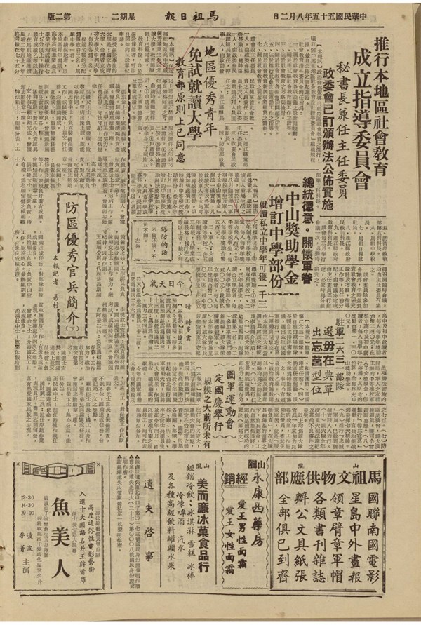 民國57年馬祖戰地政務委員會決定協助保送返鄉學子安排就業-《馬祖日報》 -