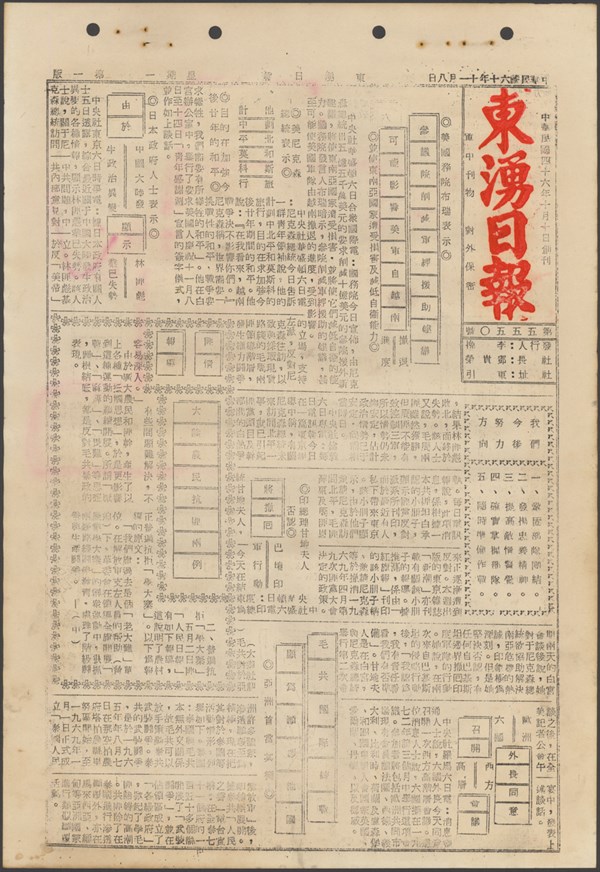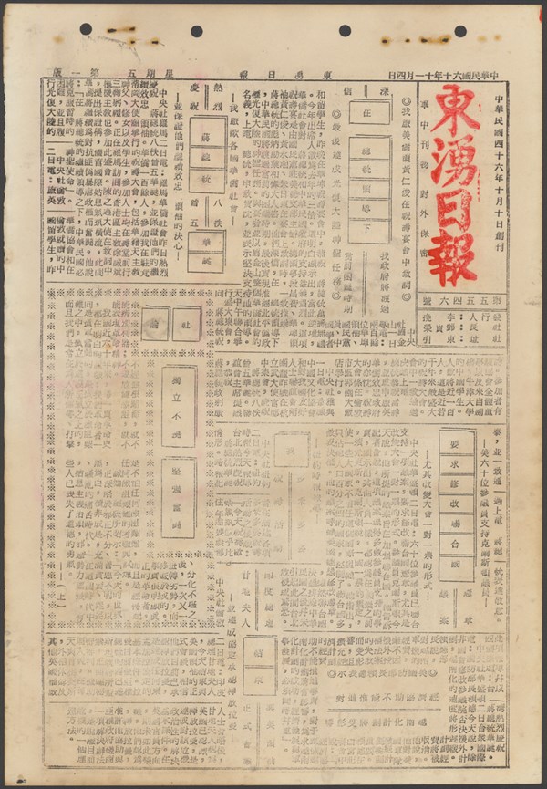 中華民國60年11月4日東湧日報第五五四六期第一版 -