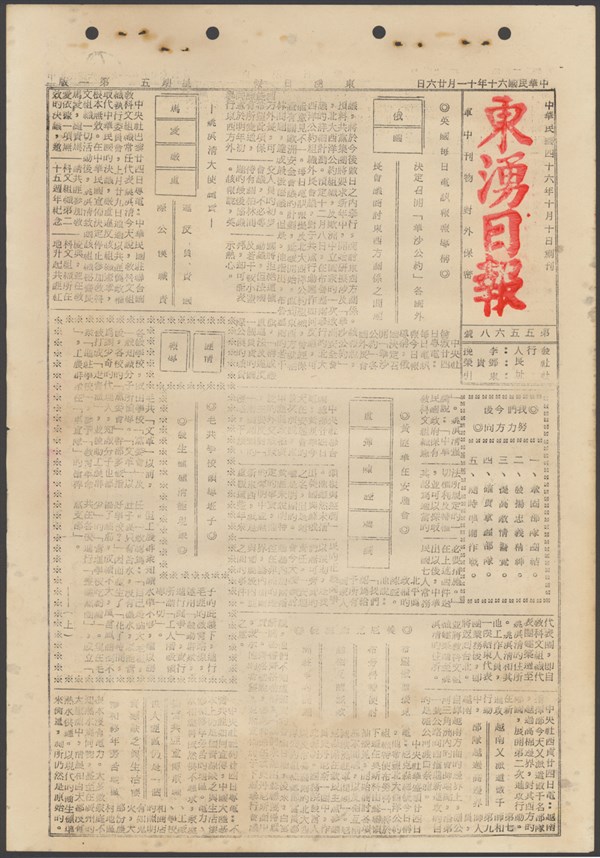 中華民國60年11月26日東湧日報第五五六八期第一版 -