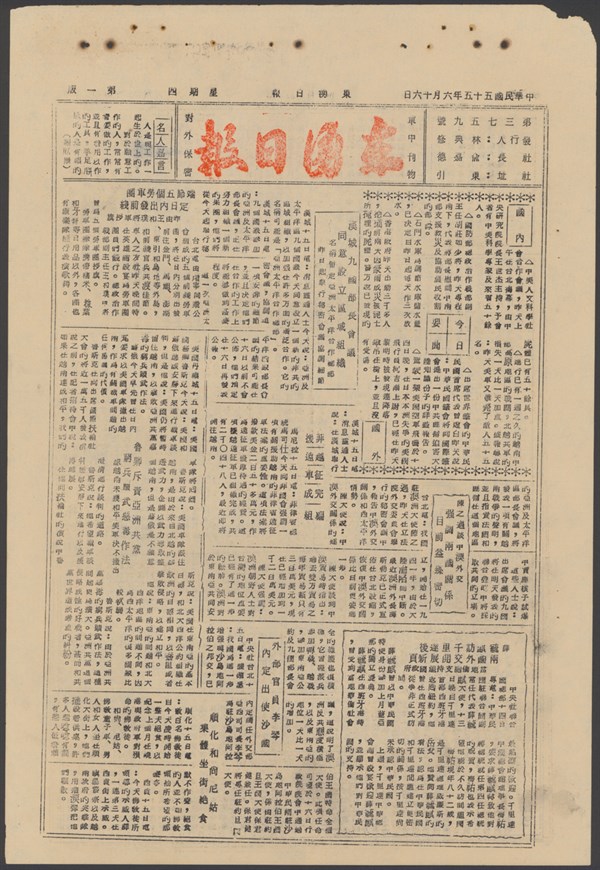 中華民國55年6月12日東湧日報第三七五五期第一版 -