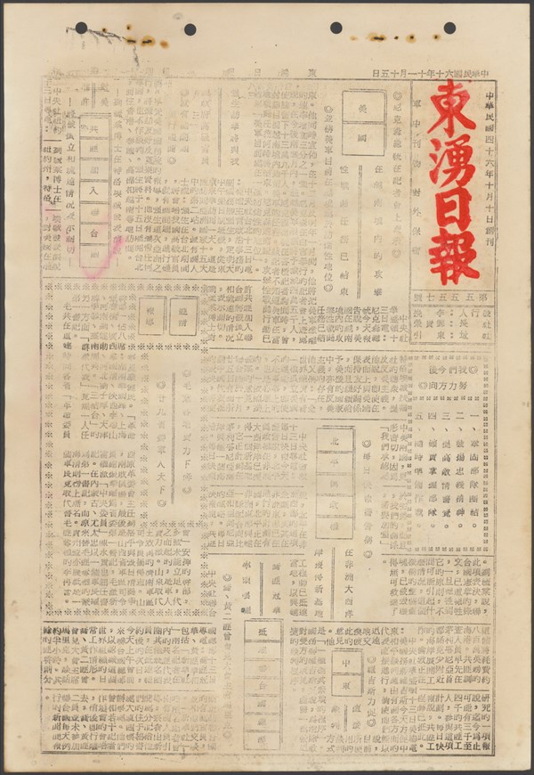 中華民國60年11月15日東湧日報第五五五七期第一版 -