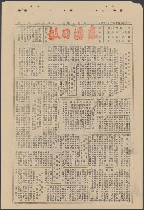 中華民國55年6月10日東湧日報第三七五三期第一版 -