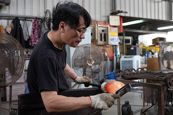 2019年4月24日至5月5日臺灣文博會工藝館,茶3.1415展場「藝」區影片為紅琉璃玻璃壺蓋壓製火拋過程 -