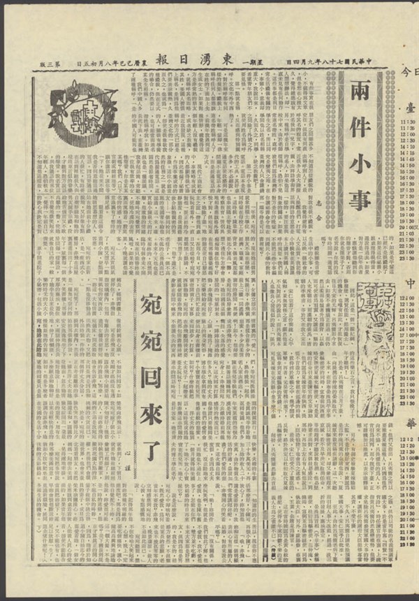 中華民國78年9月11日東湧日報第一一四八四期第三版 -