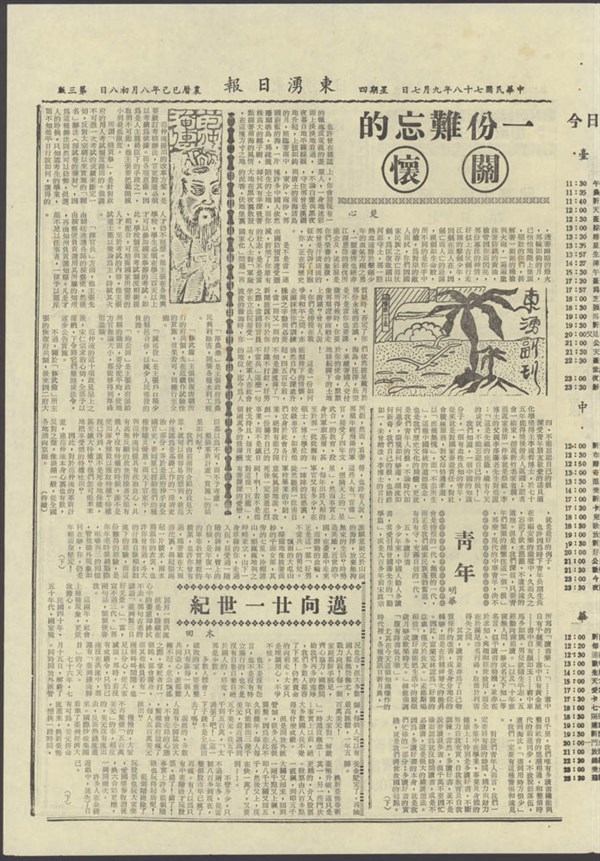 中華民國78年9月5日東湧日報第一一四七八期第三版 -