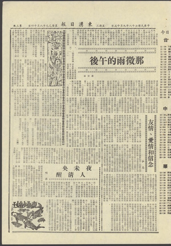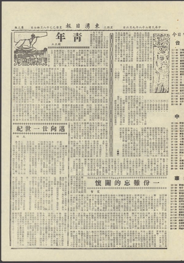 中華民國78年9月9日東湧日報第一一四八二期第三版 -