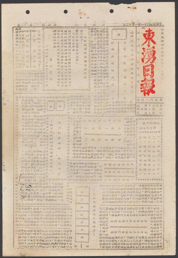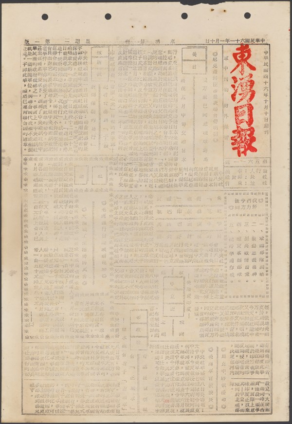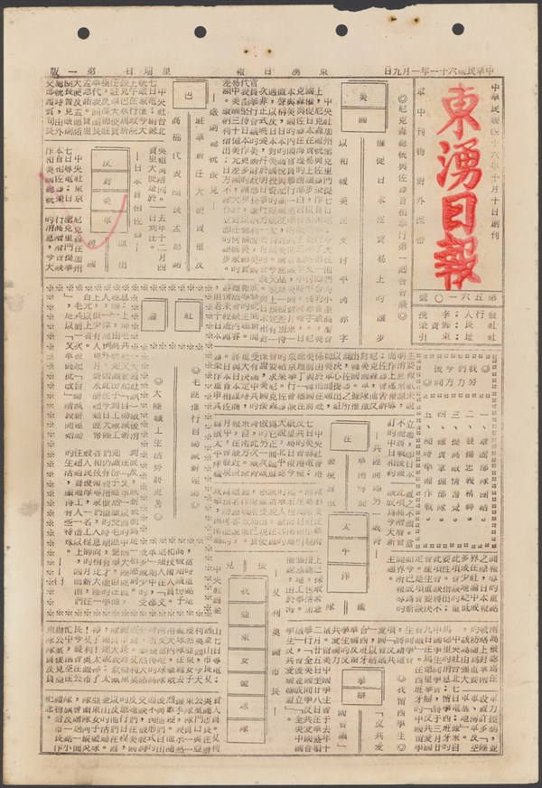 中華民國61年2月26日東湧日報第五六五五期第一版 -