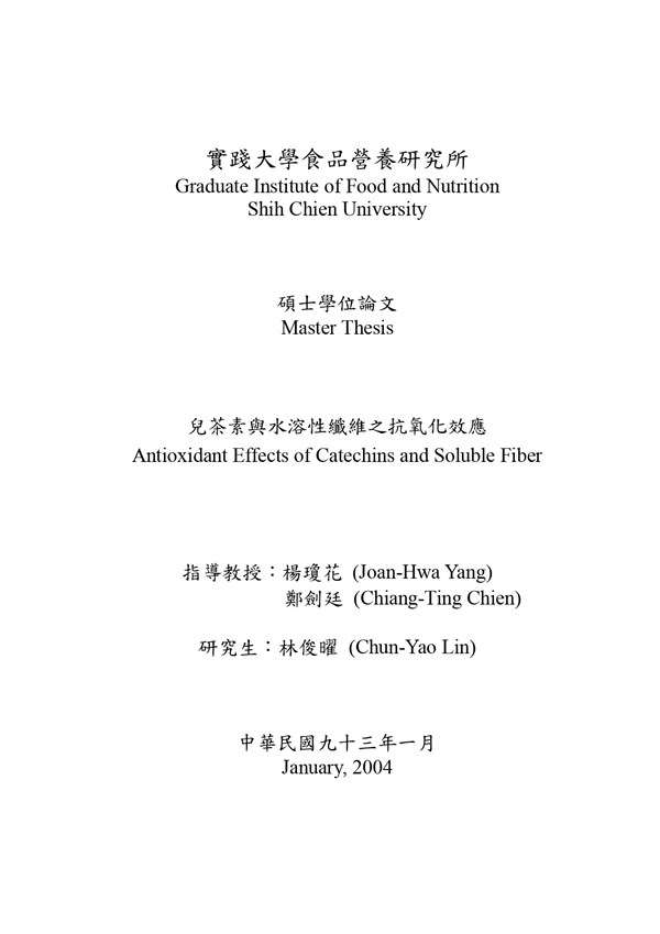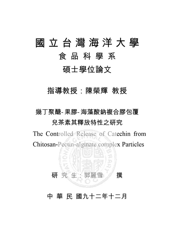 幾丁聚醣-果膠-海藻酸鈉複合膠包覆兒茶素其釋放特性之研究 -