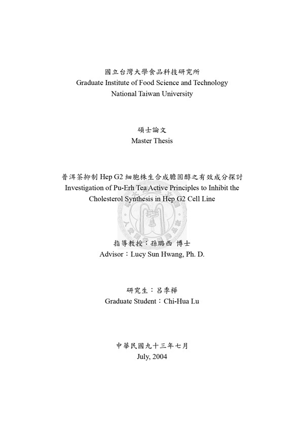 普洱茶抑制Hep G2細胞株生合成膽固醇之有效成分探討 -