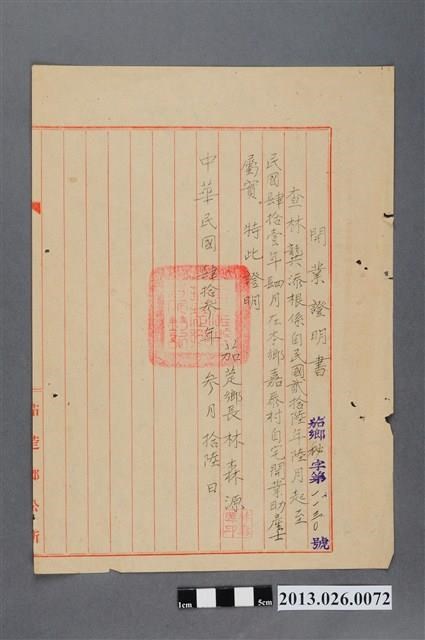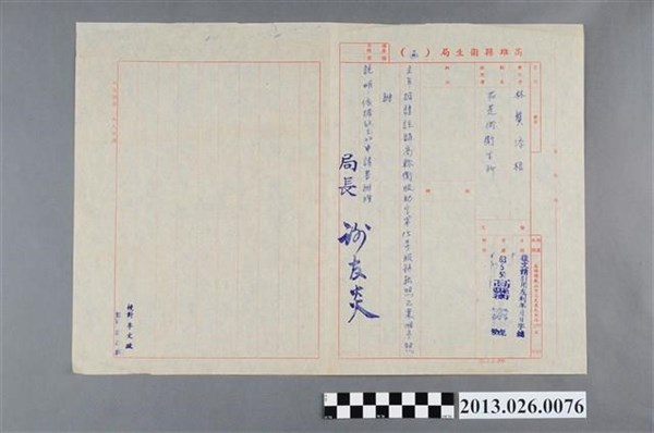1974年5月30日高雄縣衛生局函林龔添根據請註銷高縣衛服助字第15號服務執照乙案准予照辦 -