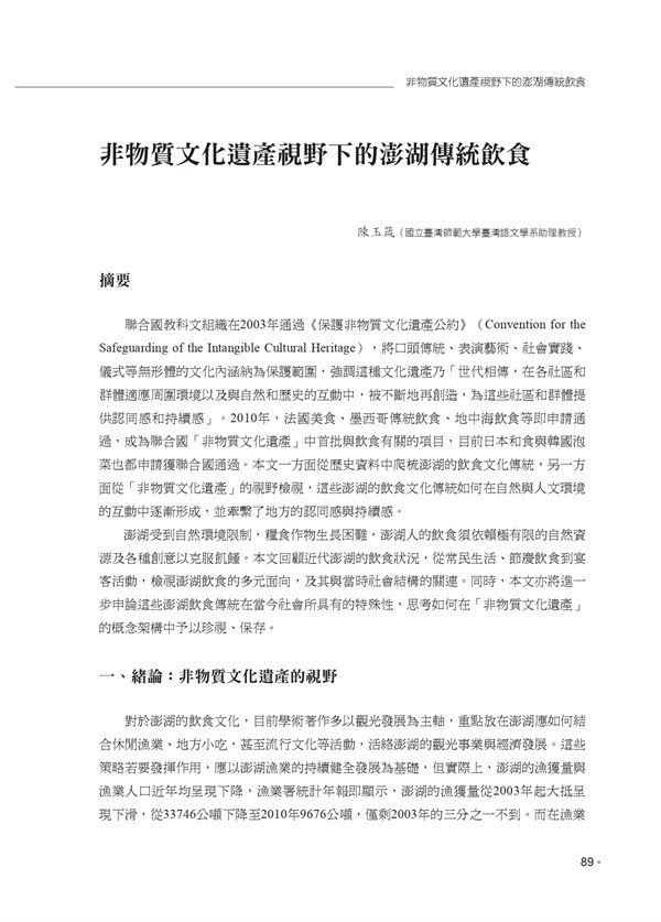 《澎湖研究學術研討會論文輯》第十三屆〈非物質文化遺產視野下的澎湖傳統飲食〉 -