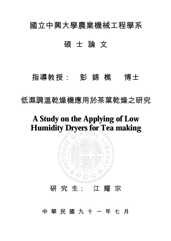 低濕調溫乾燥機應用於茶葉乾燥之研究 -