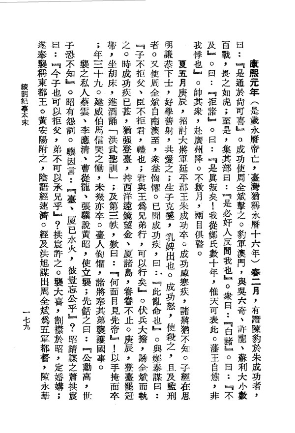 鄭成功感染寒疾 續明紀事本末卷之七 台灣文獻史料叢刊 -
