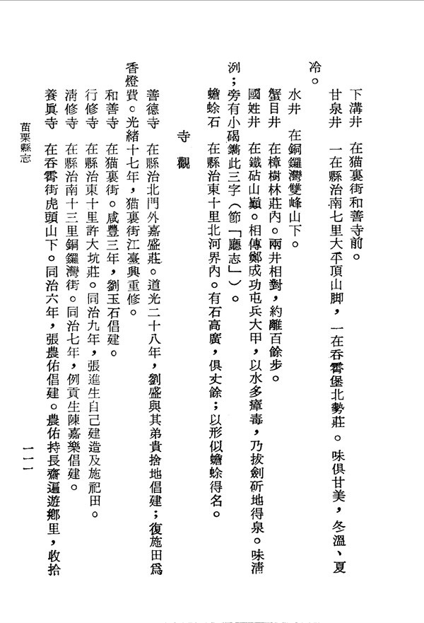 國姓井井水不受瘴氣影響 苗栗縣志卷二 台灣文獻史料叢刊 -