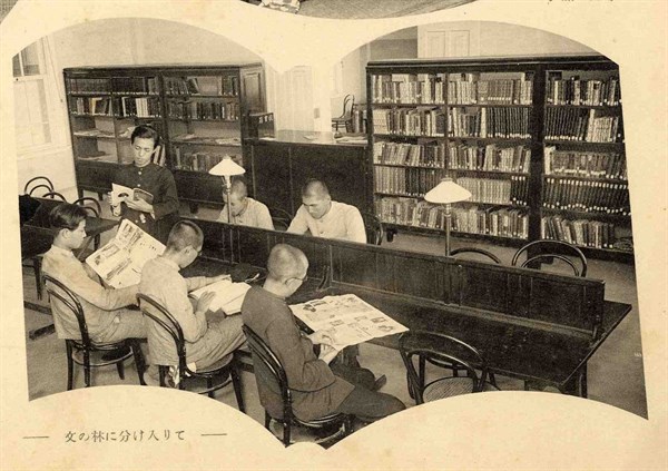 臺北高等學校1932年第5屆理乙班在本館內之圖書閱覽室閱讀書報刊物 -