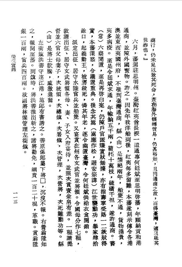 揆一遣何廷斌至思明願納貢許通商 從征實錄 台灣文獻史料叢刊 -