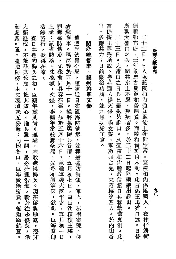 沿海風溼煙瘴引發積病舊傷 楊勇慤公奏議 台灣文獻史料叢刊 -
