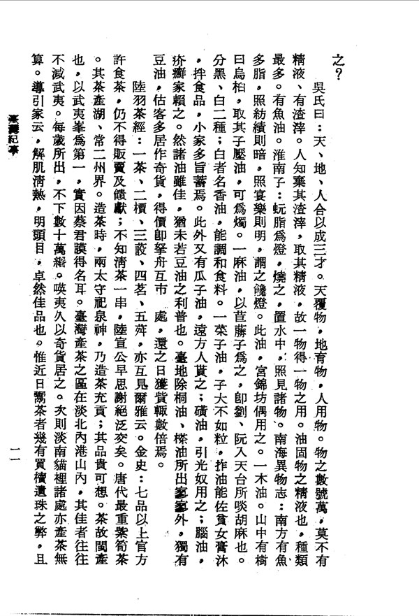 臺灣產茶在淡北內港山內為佳,次則淡南貓裡 臺灣紀事卷一 台灣文獻史料叢刊 -