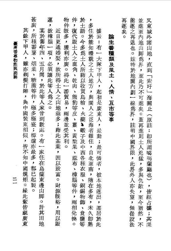 與土人物產互市並受利 臺灣番事物產與商務 台灣文獻史料叢刊 -
