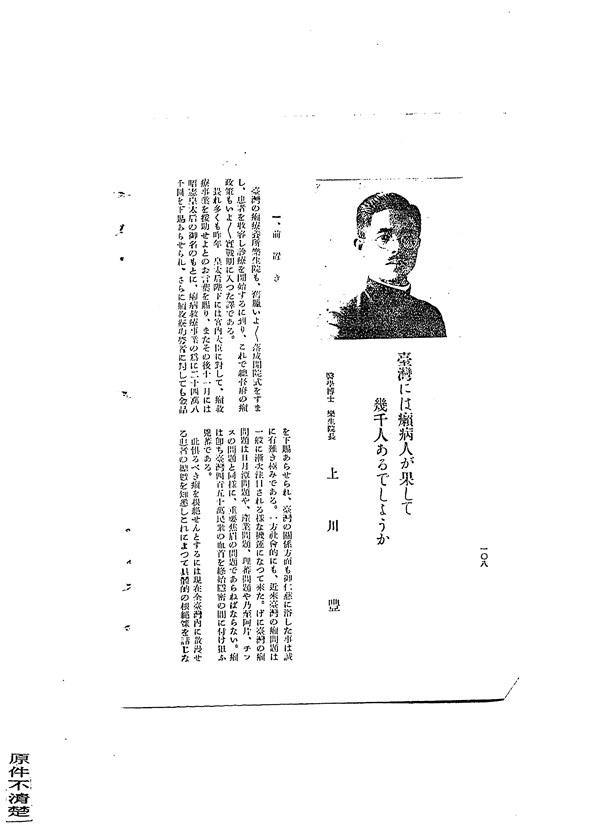 臺灣には癩病人が果して幾千人あるでしようか (中文:臺灣的癩病人數究竟有幾千人?) -
