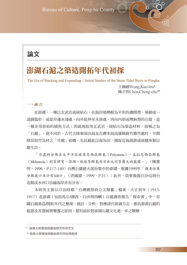 《澎湖研究學術研討會論文輯》第六屆〈澎湖石滬之築造開拓年代初探〉 -
