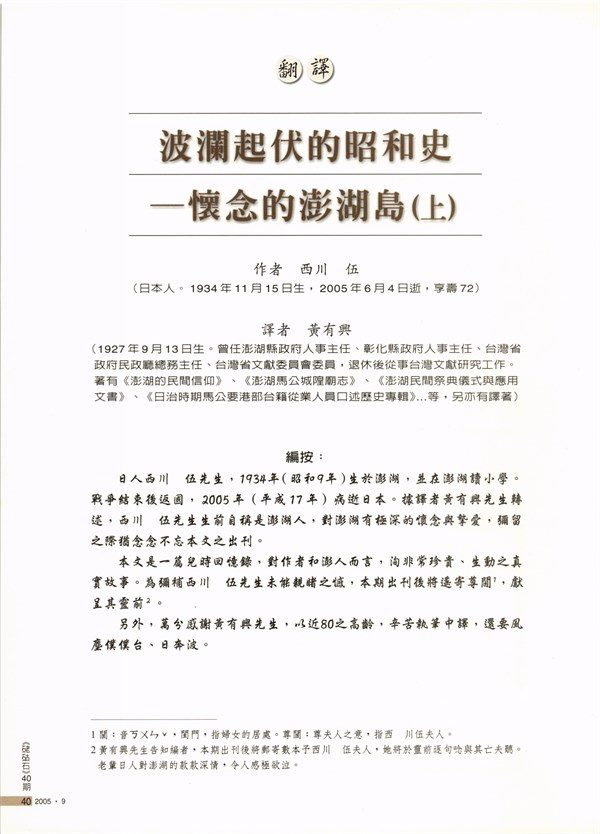 《硓古石》季刊第40期〈波瀾起伏的昭和史—懷念的澎湖島(上)〉 -