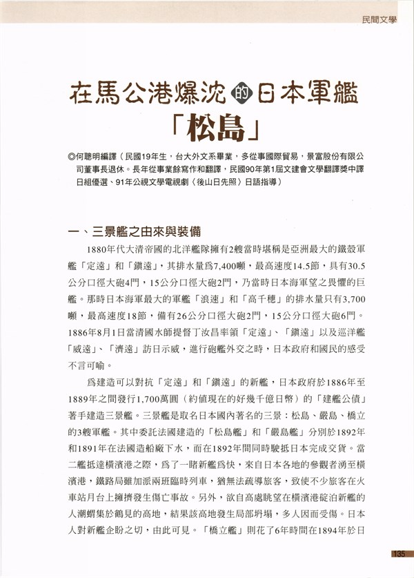 《硓古石》季刊第34期〈在馬公港報沈的日本軍艦 — 松島〉 -
