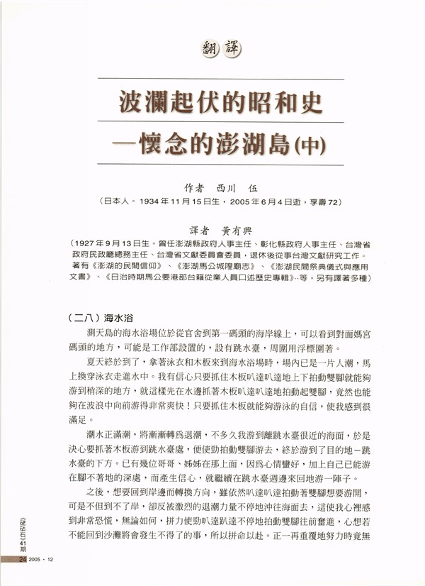 《硓古石》季刊第41期-波瀾起伏的昭和史-懷念的澎湖島(中) -