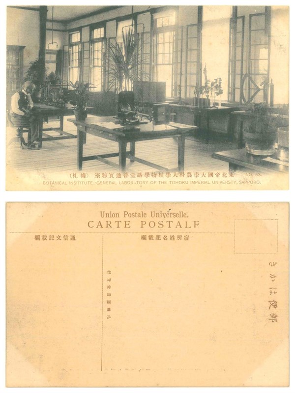 札幌明信片雙面026:東北帝國大學農科大學動植物學講堂普通實驗室(札幌) -