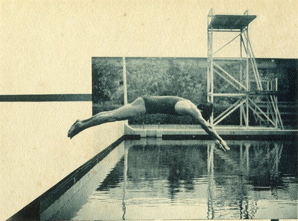 臺北高等學校1933年第6屆文甲班學生於游泳池跳水 -