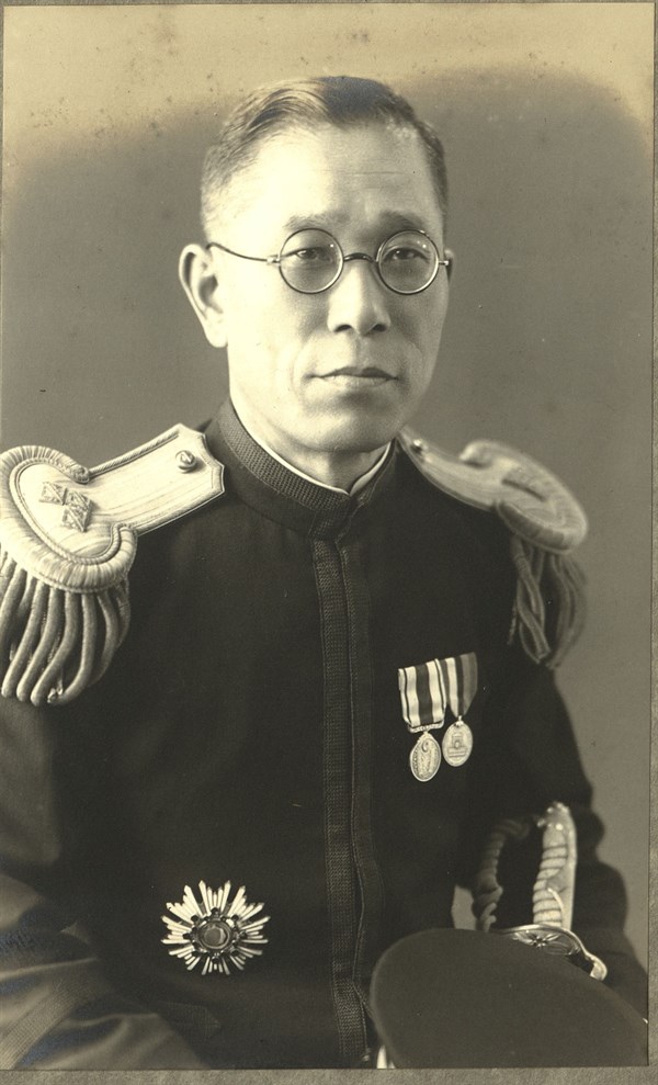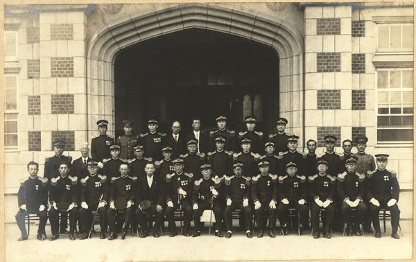臺北高等學校之教職員全體著正式服裝在本館前合影 -