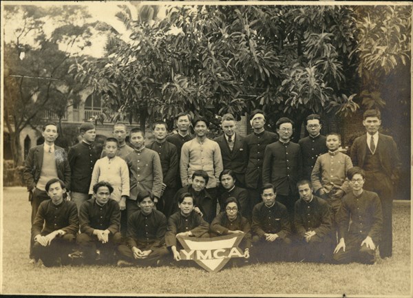 臺北高等學校1938年第11屆理甲班學生參加YMCA研習活動後師生在草坪上合影