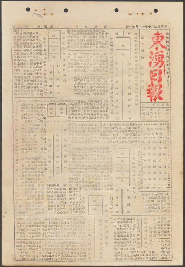 中華民國60年11月11日東湧日報第五五五三期第一版 -
