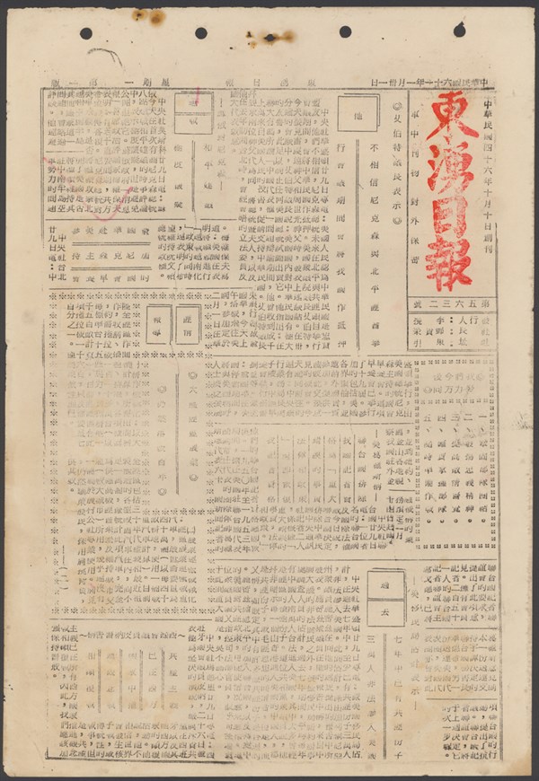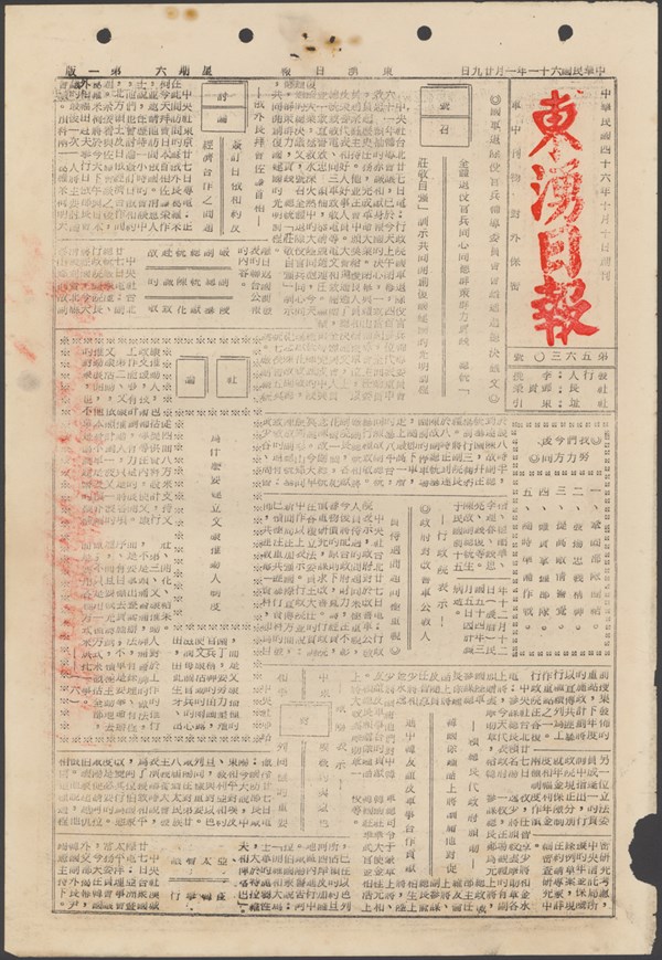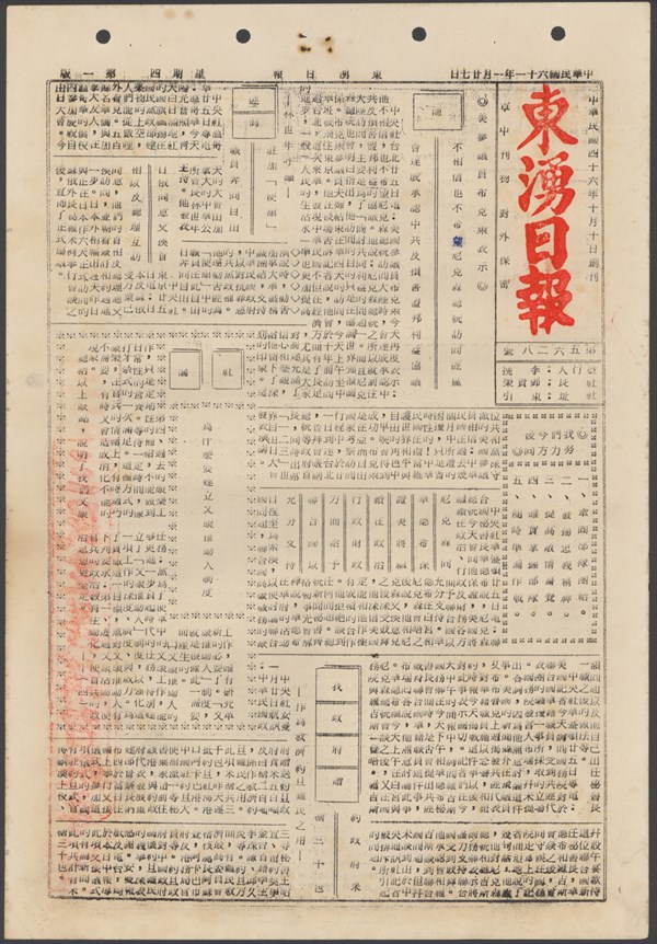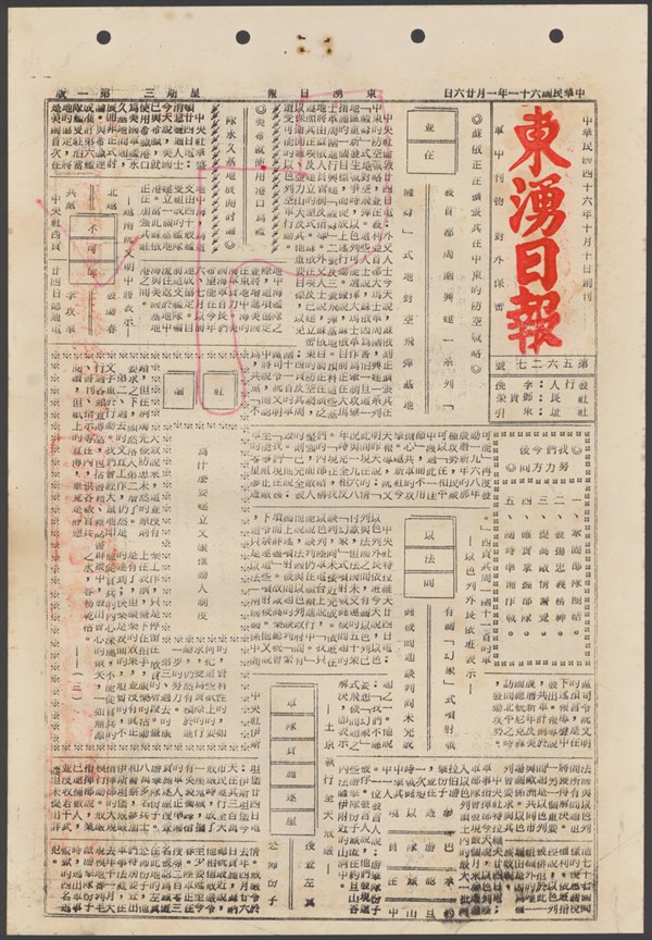 中華民國61年1月31日東湧日報第五六三二期第一版 -