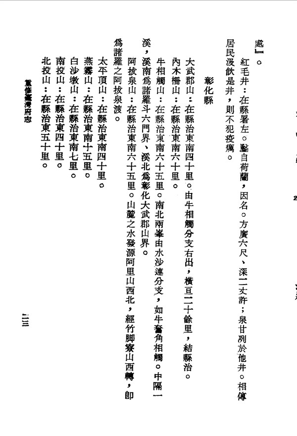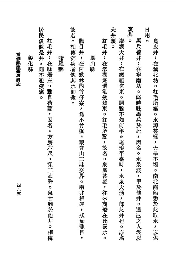 紅毛井鑿自荷蘭而名,相傳居民飲此井水,則不犯疫癘 重修臺灣府志卷一 台灣文獻史料叢刊 -