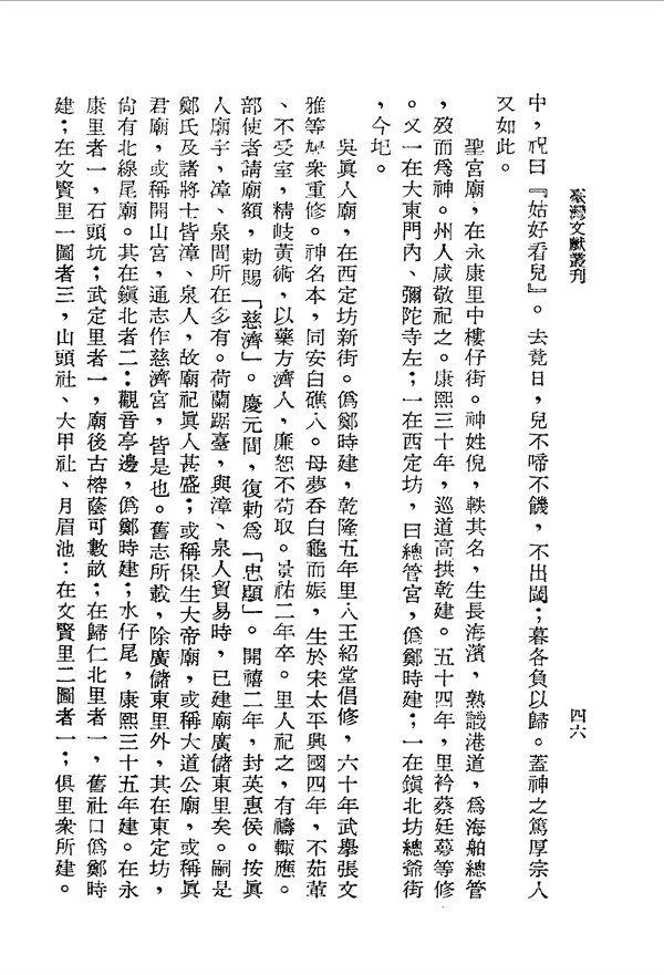 吳真人廟,以藥方濟人敕為忠顯 臺灣志略卷一 台灣文獻史料叢刊 -